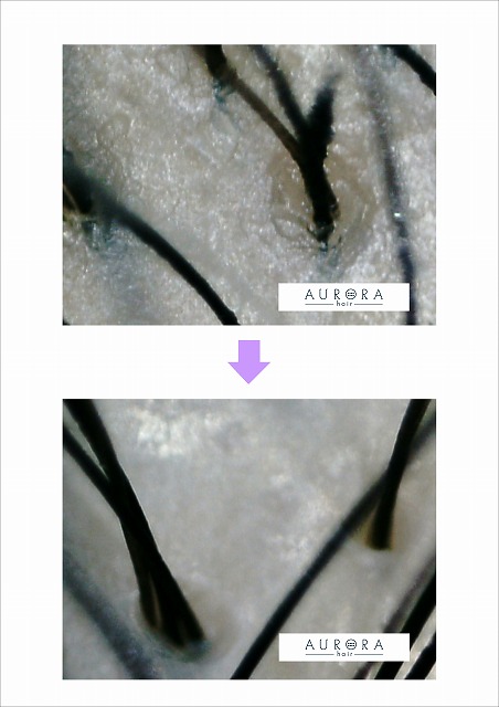 そして、頭皮もしわがよった状態から、ふっくらしたハリのある状態に変わっています。